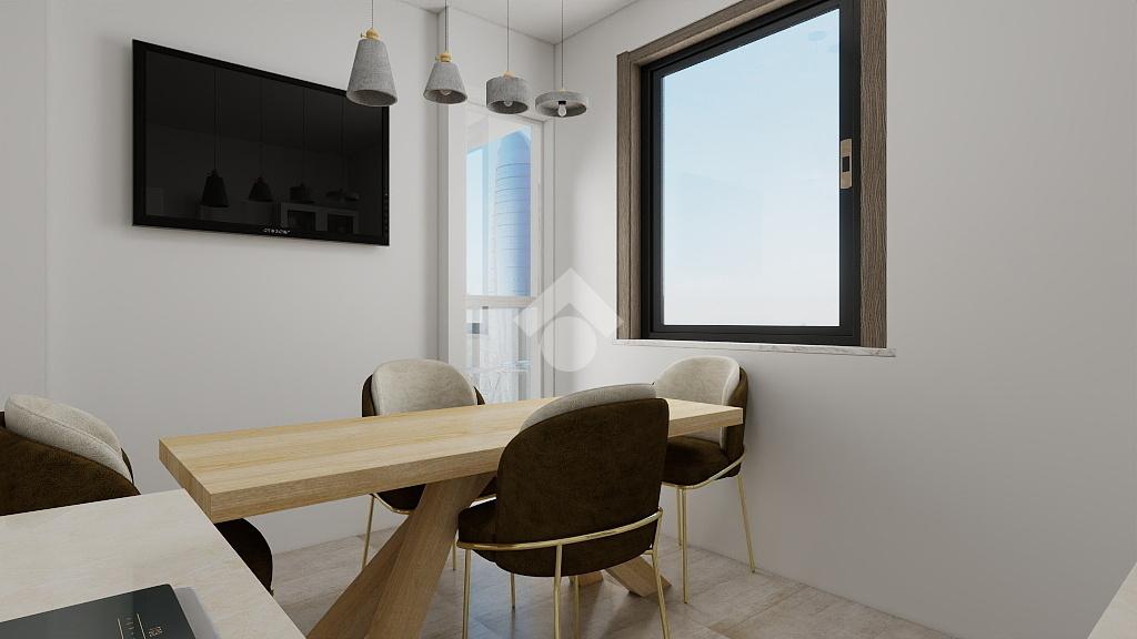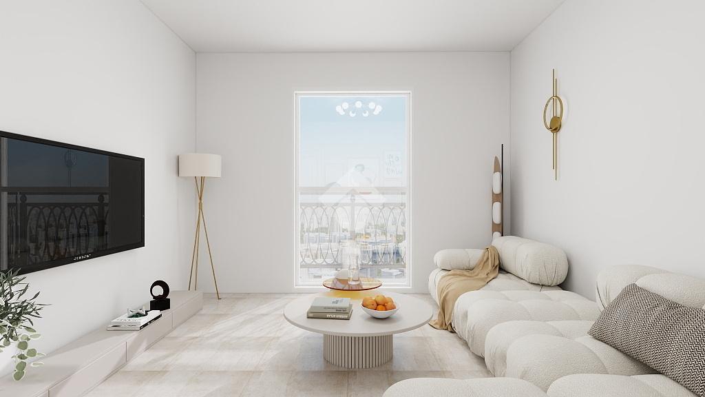 L’ingresso si apre su un corridoio centrale che distribuisce in modo funzionale tutti gli ambienti. La zona giorno è composta da una cucina abitabile con accesso al primo balcone, dotato di zona lavanderia, e da un luminoso soggiorno con affaccio sul secondo balcone.