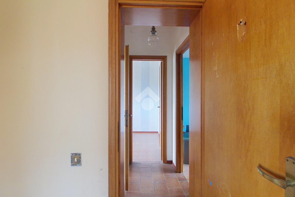 L’ingresso si apre sul soggiorno, separato dalla spaziosa cucina abitabile, dotata di un comodo ripostiglio attualmente adibito a secondo bagno.