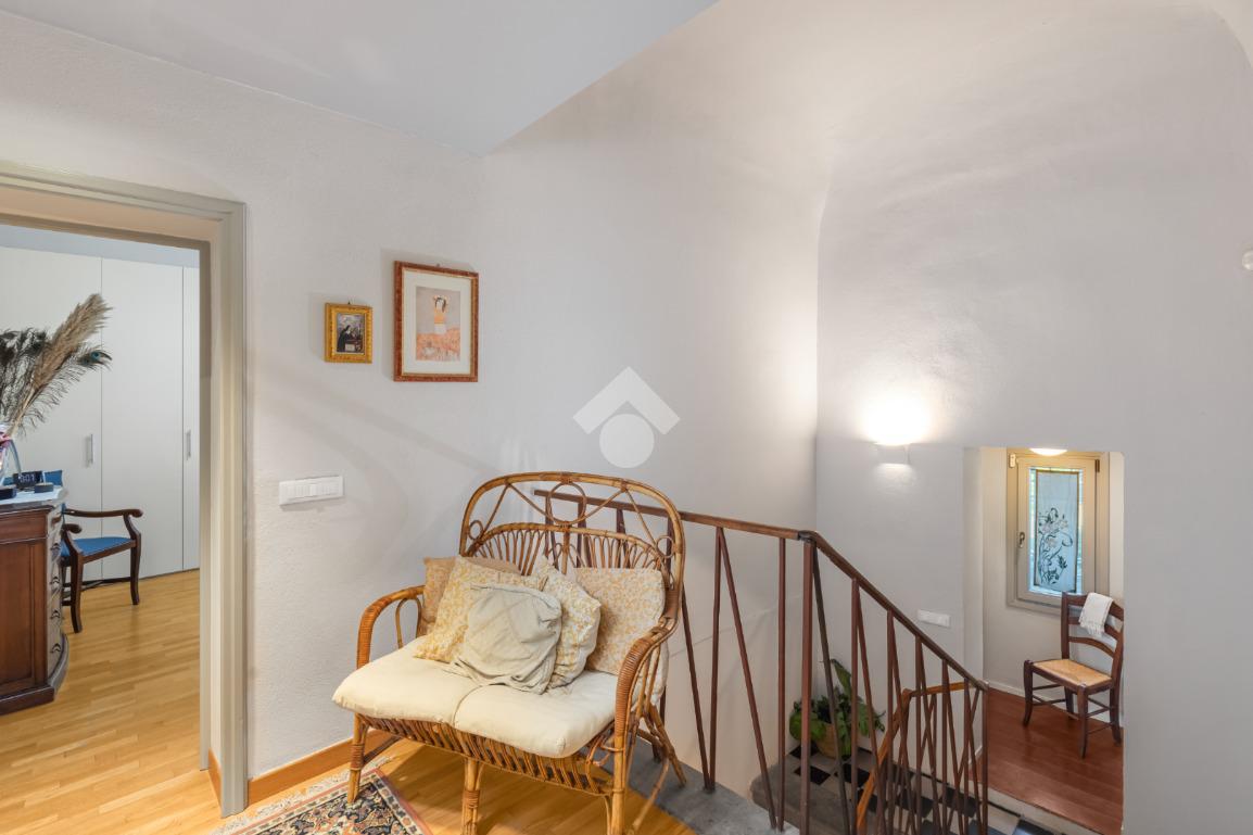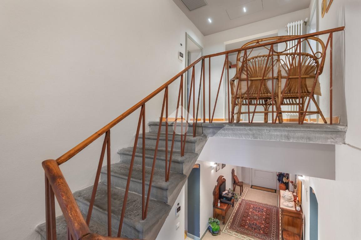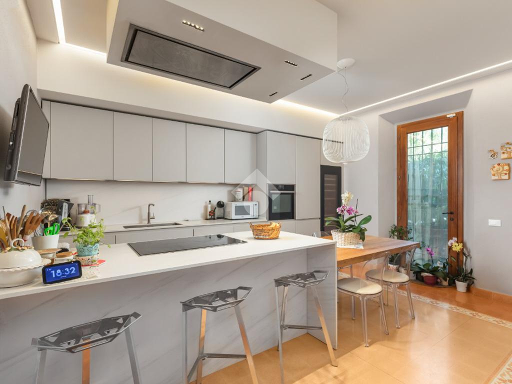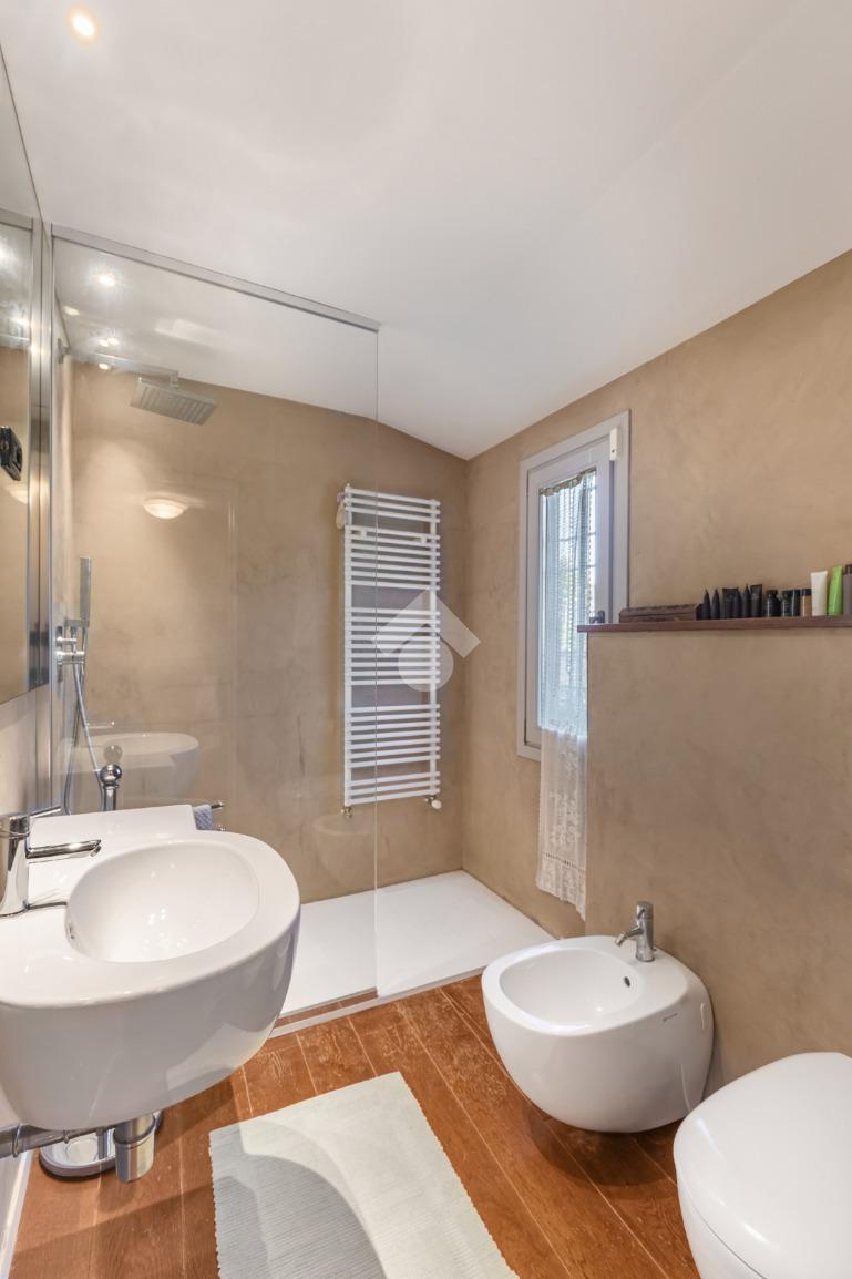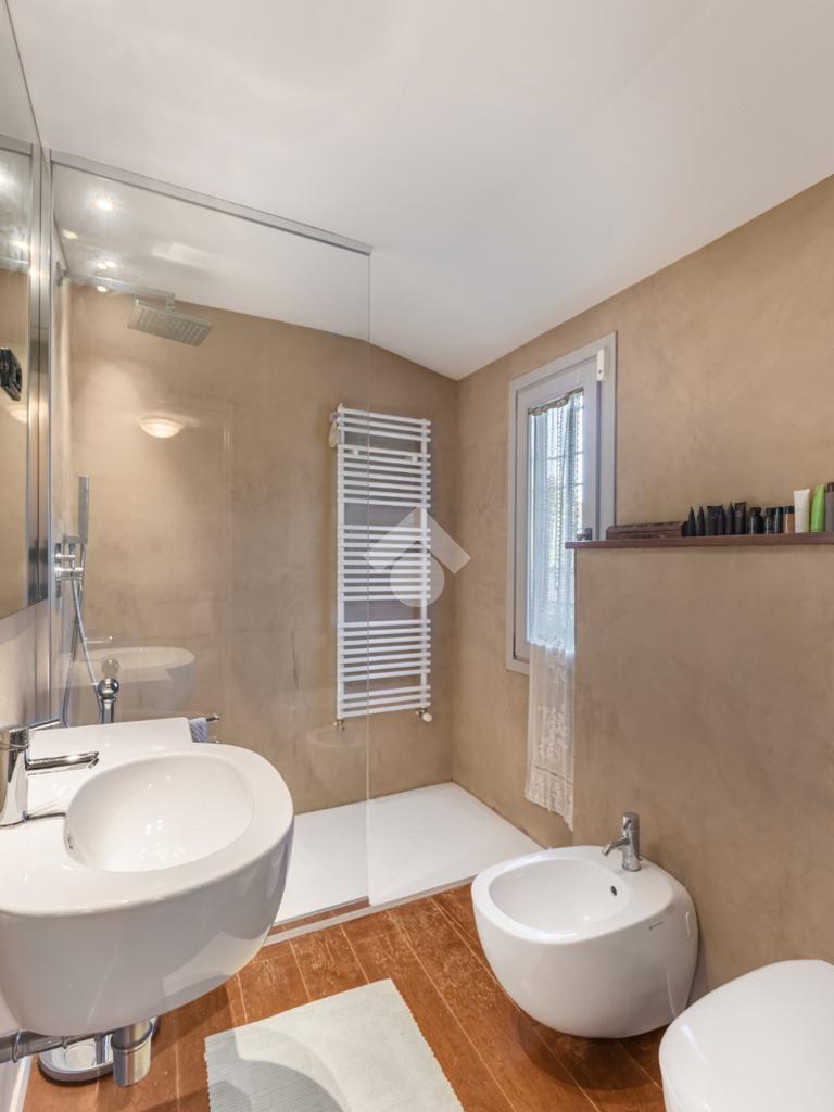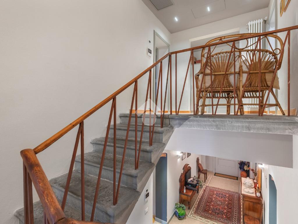 Al piano terra, l’ampio e luminoso doppio soggiorno caratterizzato dal camino a gas è separato dalla cucina abitabile, dotata di una cucina di design su misura. Completano il piano uno studio e un bagno di servizio. I pavimenti in autentiche marmorine del 1921 restaurate, donano un carattere unico e raffinato all’ambiente.