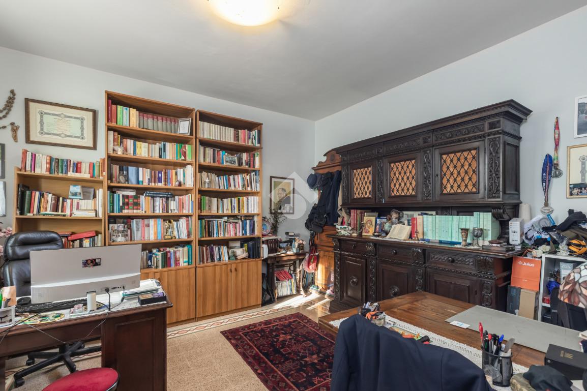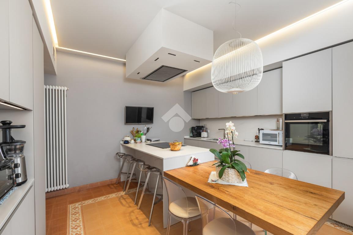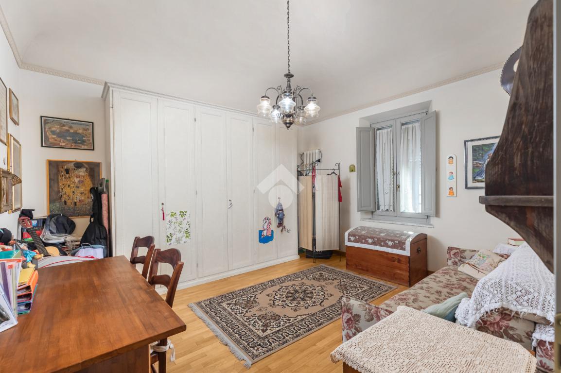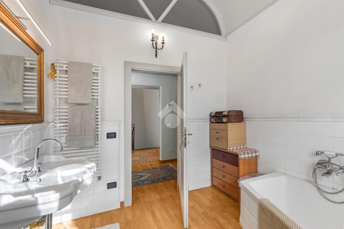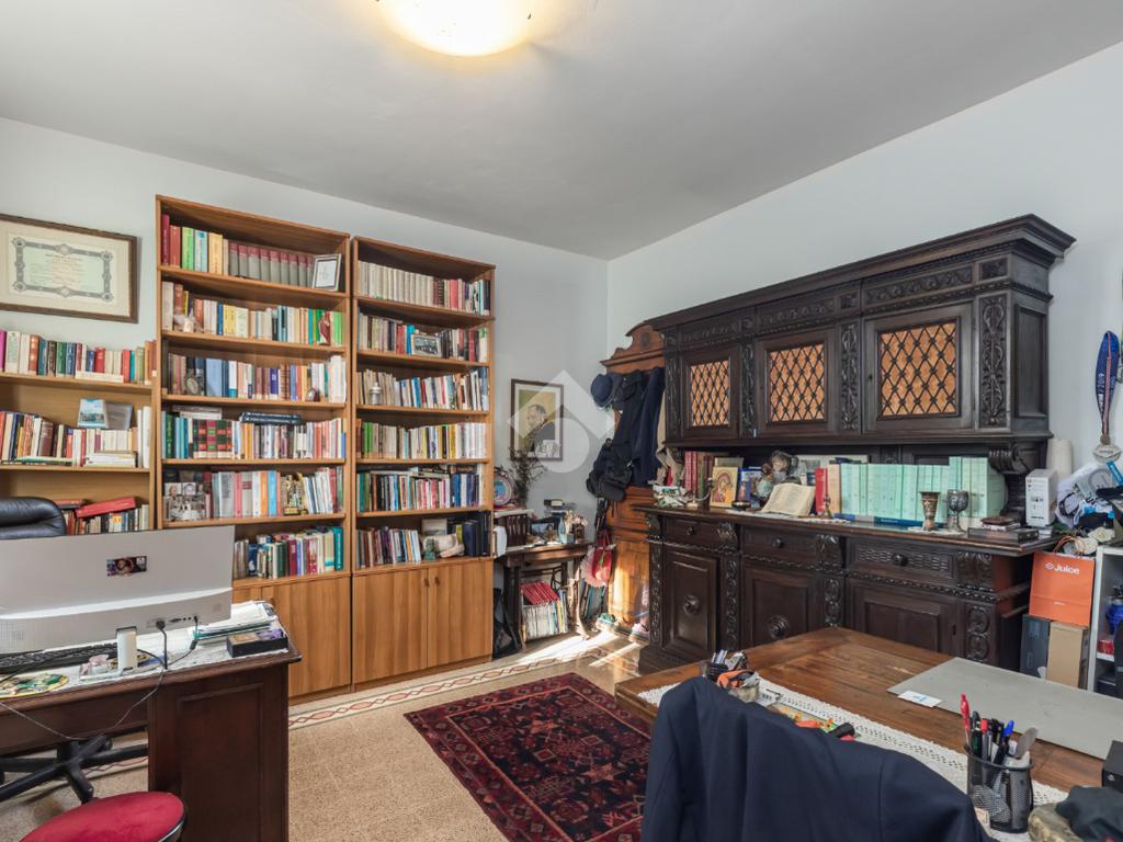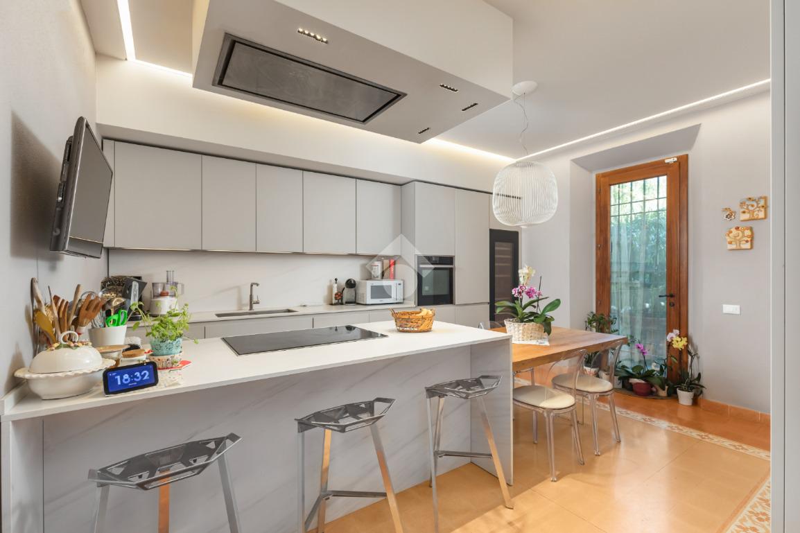 Al piano terra, l’ampio e luminoso doppio soggiorno caratterizzato dal camino a gas è separato dalla cucina abitabile, dotata di una cucina di design su misura. Completano il piano uno studio e un bagno di servizio. I pavimenti in autentiche marmorine del 1921 restaurate, donano un carattere unico e raffinato all’ambiente.
