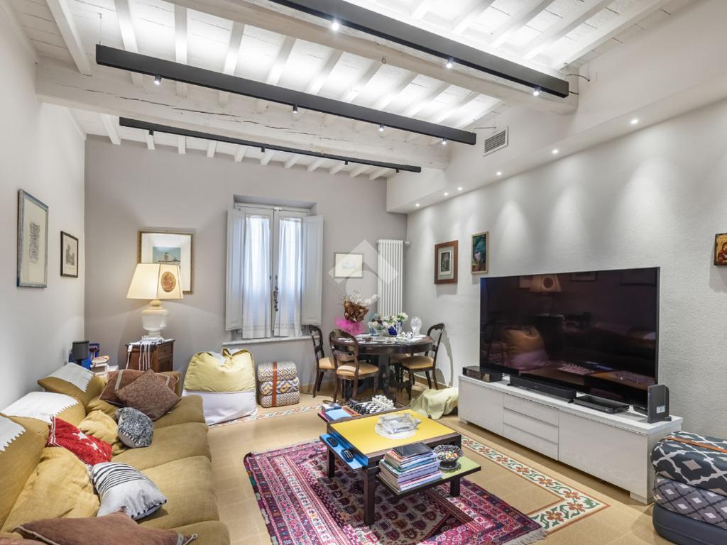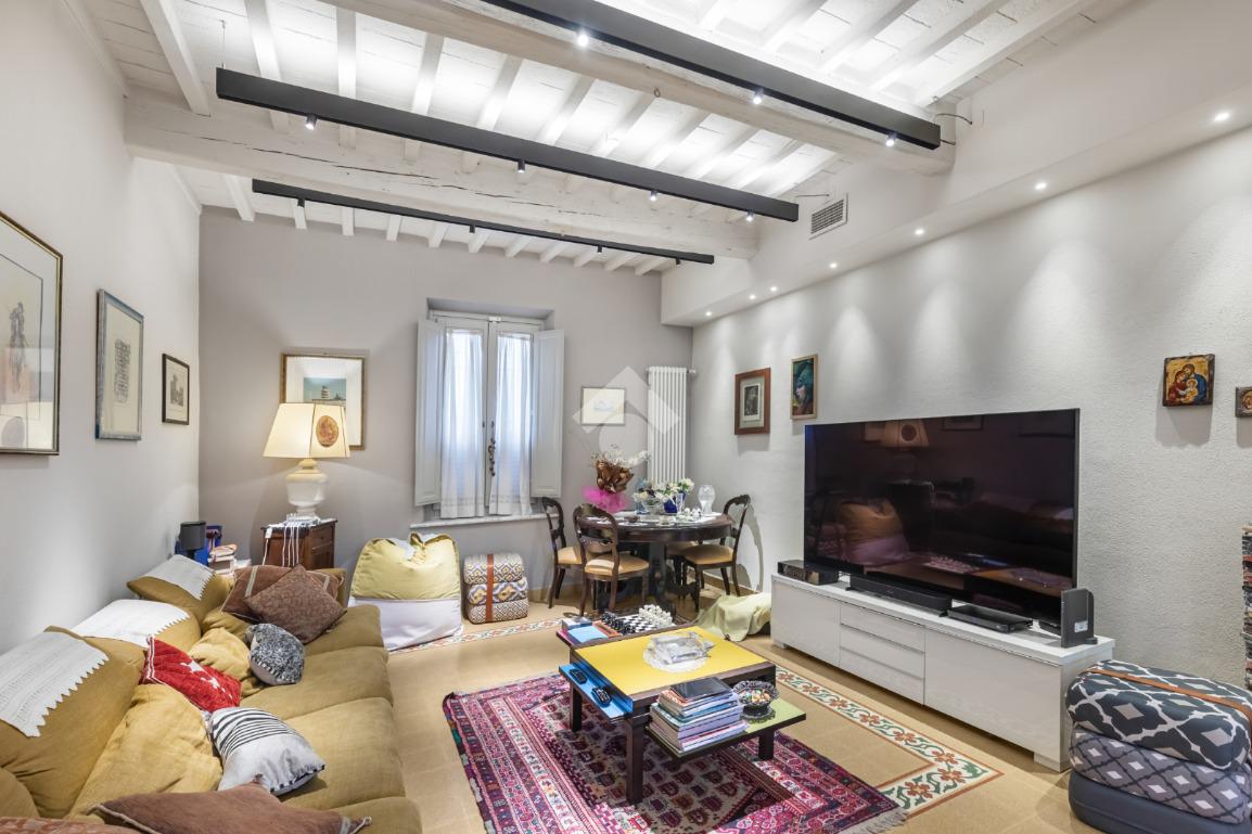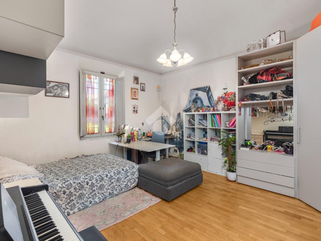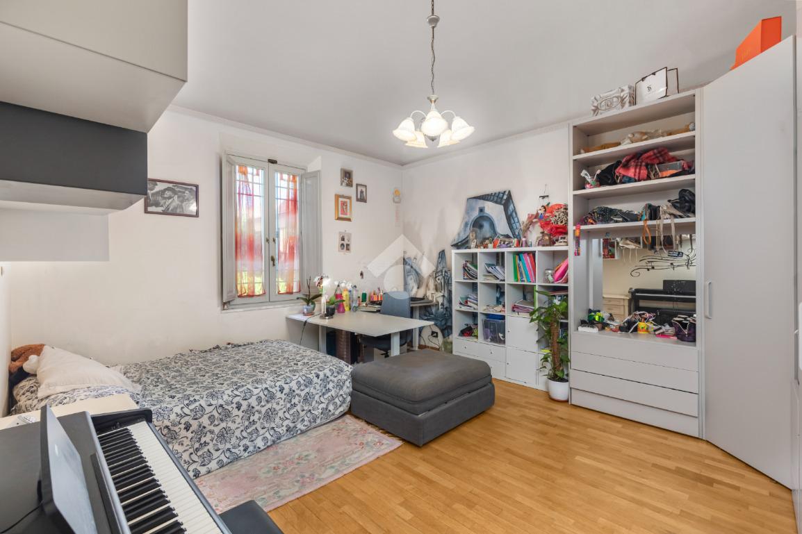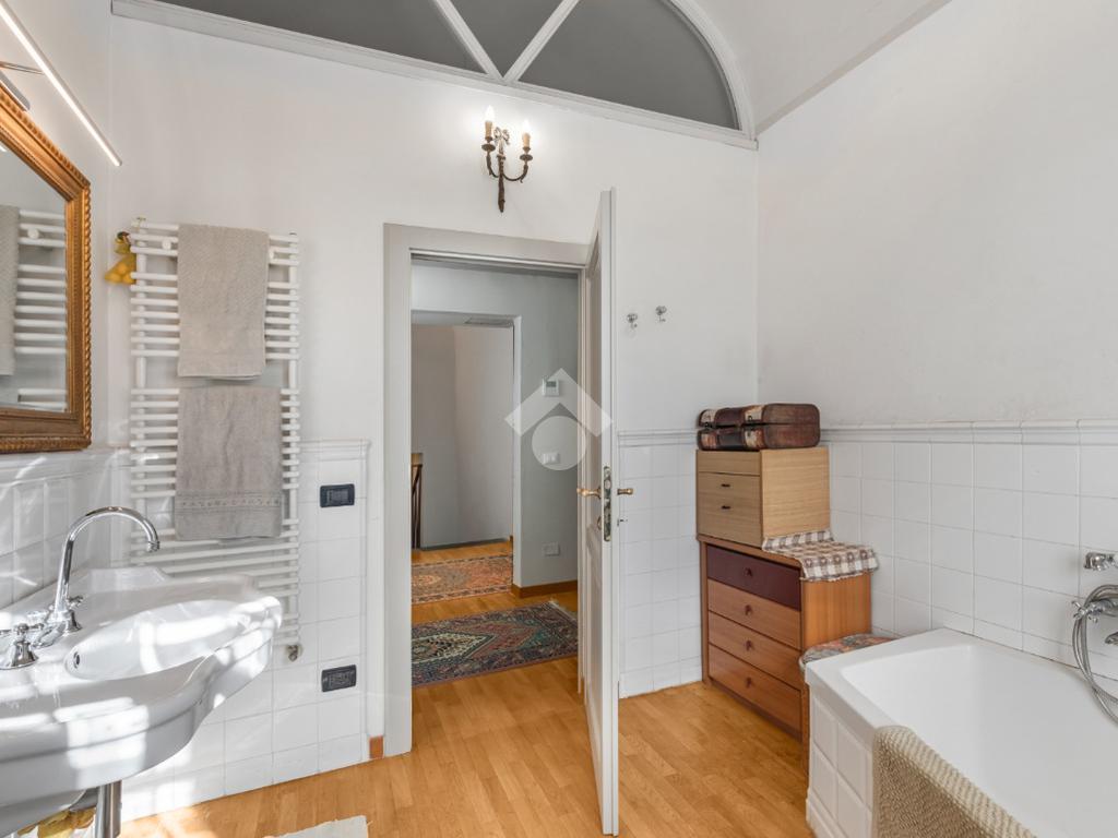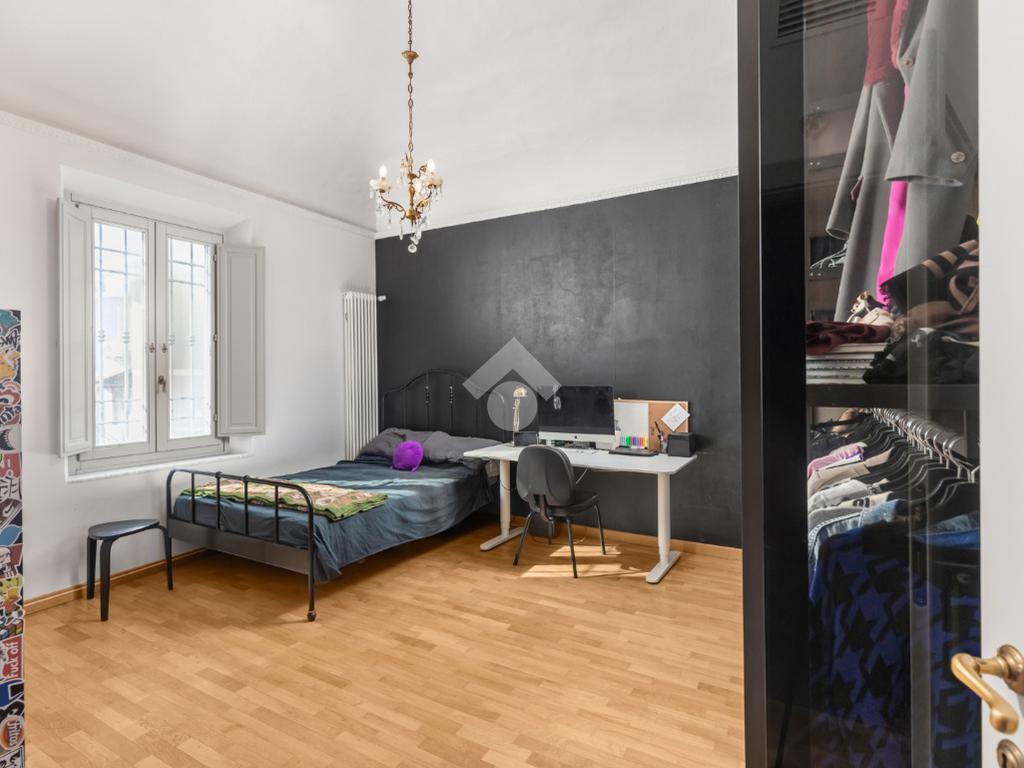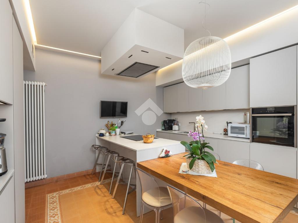 Al piano terra, l’ampio e luminoso doppio soggiorno caratterizzato dal camino a gas è separato dalla cucina abitabile, dotata di una cucina di design su misura. Completano il piano uno studio e un bagno di servizio. I pavimenti in autentiche marmorine del 1921 restaurate, donano un carattere unico e raffinato all’ambiente.