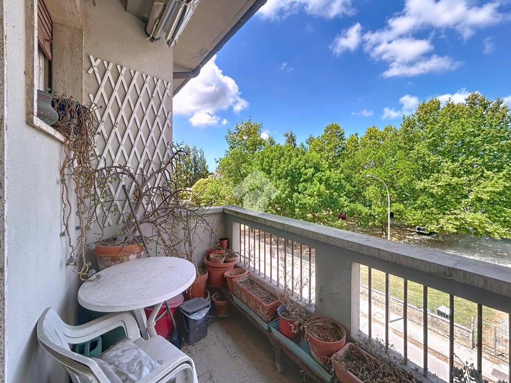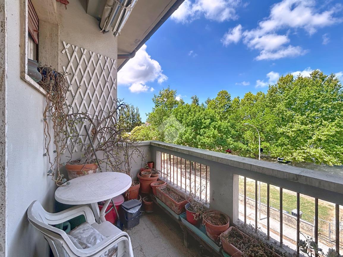 L'ingresso si apre su un corridoio che distribuisce in modo funzionale tutti gli ambienti. La zona giorno è composta da un ampio e luminoso soggiorno con accesso al primo balcone, separato dalla cucina abitabile, anch’essa con accesso a un secondo balcone di servizio, ideale per uso lavanderia.